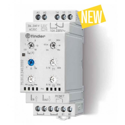 70.51.0.240.2032, Универсальное контрольное реле тока для 1-фазных сетей AC/DC (6 функций),контроль тока 0.5…16 A; настраиваемые параметры; выход 1CO 10А; модульное, ширина 35мм; степень защиты IP20
